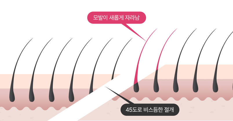 <h2><span>모근을 보존하는 45도 절개</span></h2>